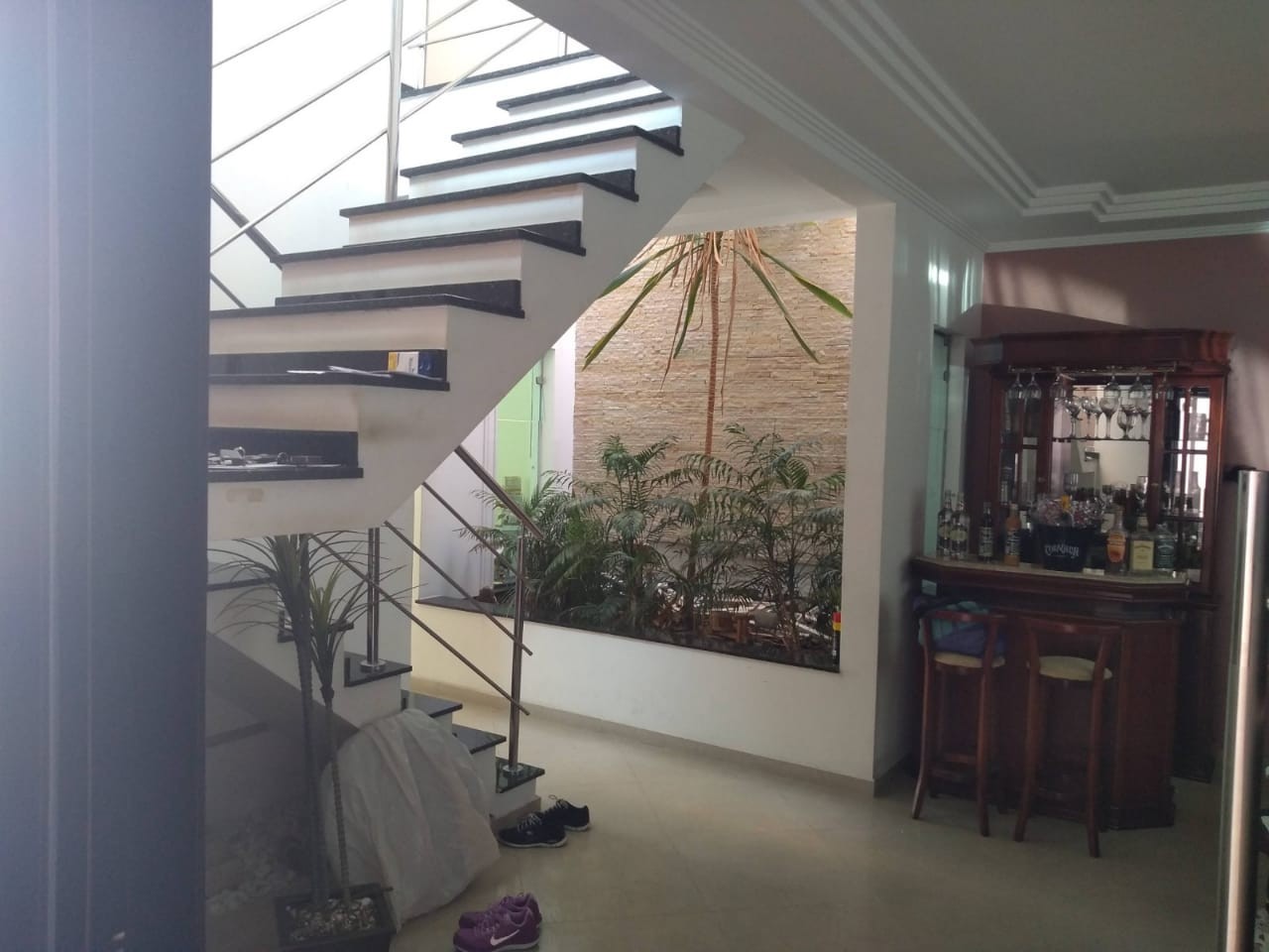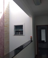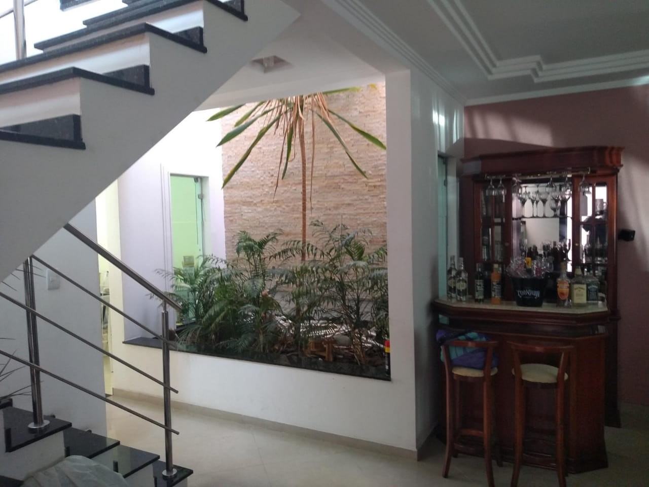 COM (03) SUITES, SENDO UMA MASTER COM HIDROMASSAGEM E COM VARANDA, (01) ESCRITORIO, SALA COM JARDIM DE INVERNO, PORCELANATO E LAVABO, COZINHA COM (02) AMBIENTES, LAVANDERIA, GARAGEM COBERTA PARA (02) CARROS E PORTAO AUTOMATICO, CHURRASQUEIRA COM AREA GOURMET, AQUECEDOR SOLAR, COLETA DE AGUA DE CHUVA, CASA DOS FUNDOS COM (02) COMODOS E (01) BANHEIRO.